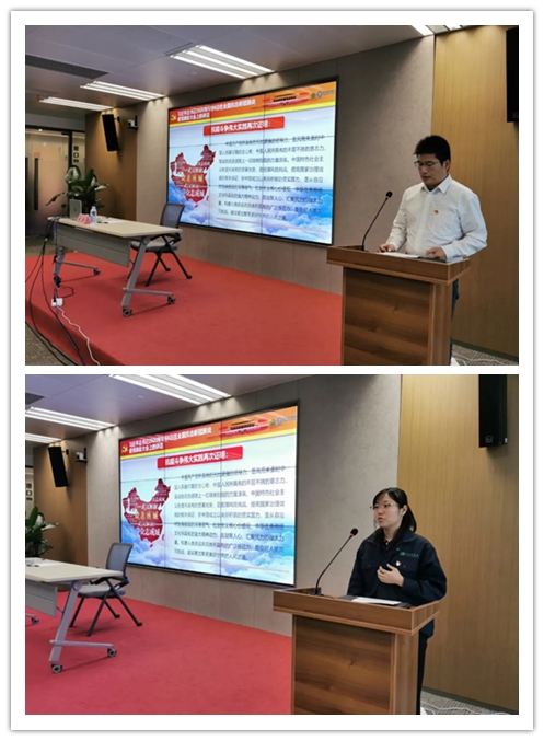 最后,各黨支部代表上臺交流發(fā)言,將習近平新時代中國特色社會主義思想與工作實際、身邊典型、感人故事相結(jié)合,講述身邊的感人事跡和今天的學習體悟。